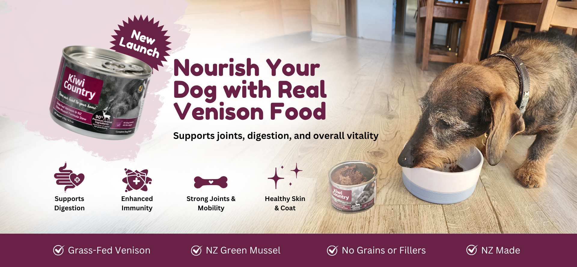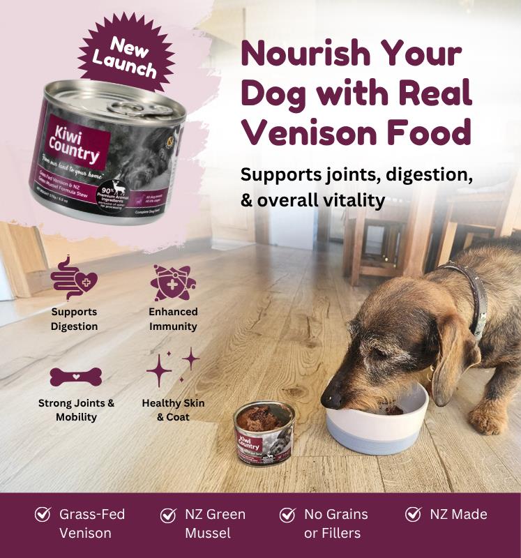 Kiwi Country™ dog and cat food uses NZ sourced grass-fed, cage free proteins to deliver a sustainable, nutritious, complete and balanced meal. All products, both wet and dry, have meat as the greatest ingredient. Kiwi Country’s meat first focus is a great success with choosy pets. No artificial flavours, colours, preservatives and zero grain is also a huge help with creating tasty recipes that awaken the appetites of picky dogs and cats. We add proven superfoods - NZ Green Mussel, Liver, Tripe, Fish Oil, Kiwifruit, Flaxseeds, Cranberries and Kelp. All provide powerful natural support for canine and feline health.