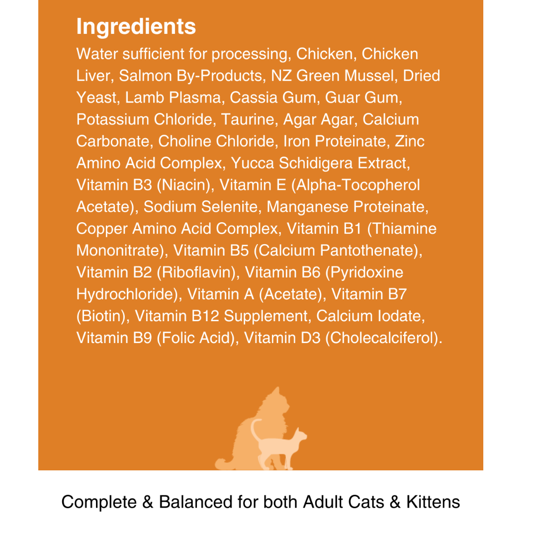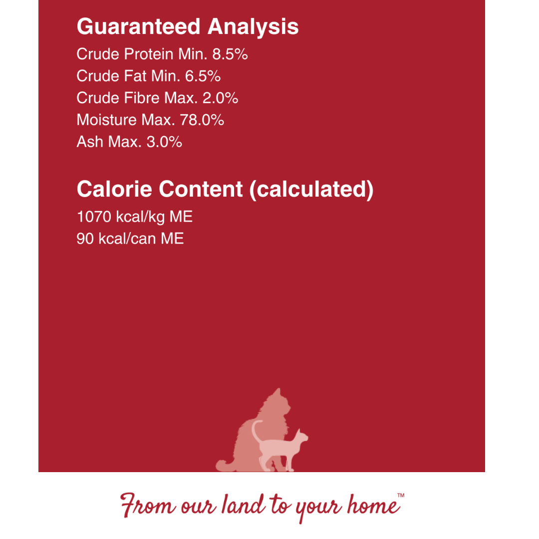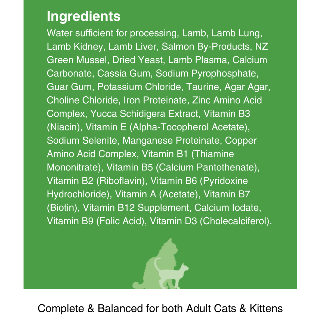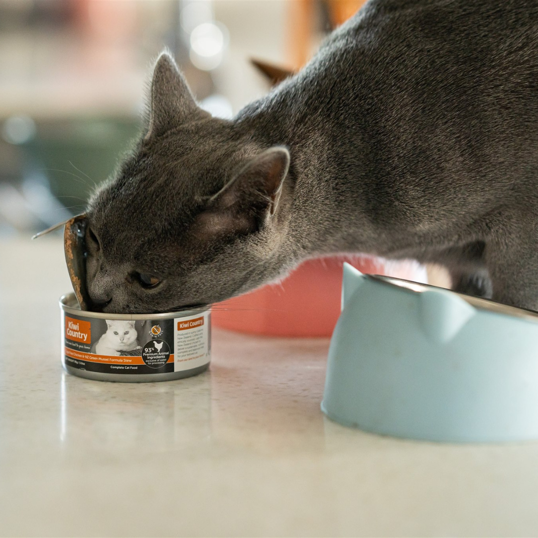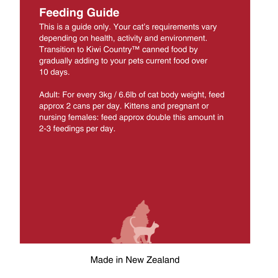 Treat your choosy cat to two of each! Our “Mixed Six” bundle contains 2 of each wet cat food recipe: 2x Kiwi Country™ Grass Fed Beef & NZ Green Mussel Formula Stew, 2x Kiwi Country™ Cage Free Chicken & NZ Green Mussel Formula Stew, 2x Kiwi Country™ Grass Fed Lamb & NZ Green Mussel Formula Stew. Discover their favourite Kiwi Made high meat wet cat food recipe. Complete cat nutrition, formulated for All Cat Breeds, Adults, Kittens and Pregnant or Nursing Females.