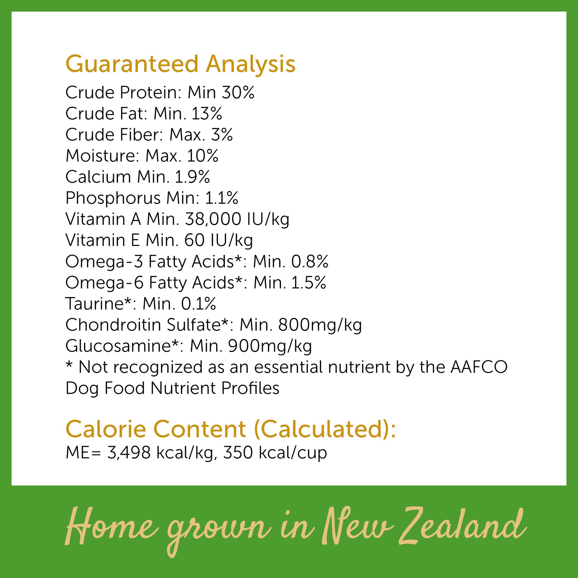 *Not recognized as an essential nutrient by the AAFCO Dog Food Nutrient Profiles